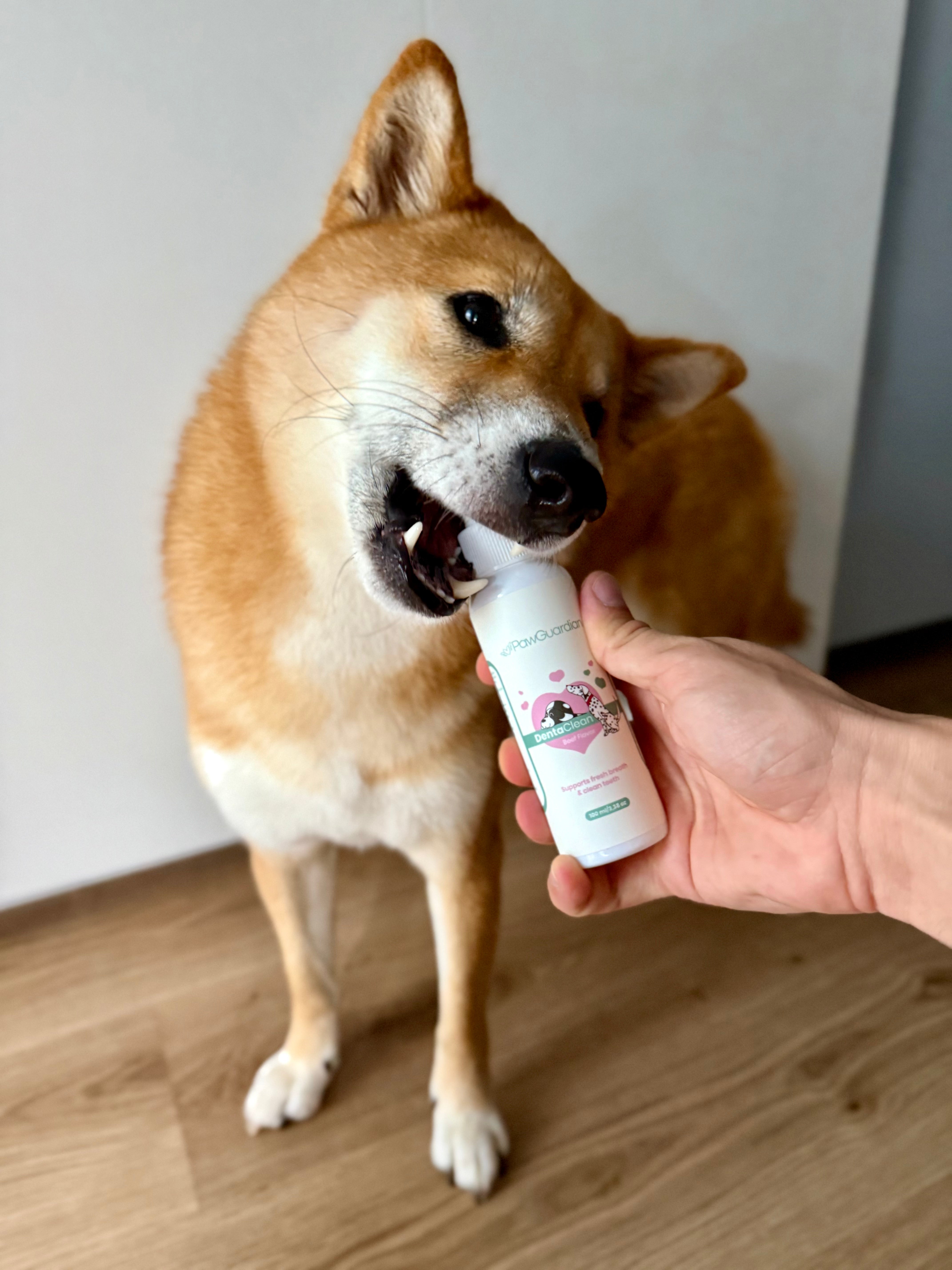Our spray is applied to your pet's food or directly onto its teeth. Goodbye to tedious tooth brushing!
